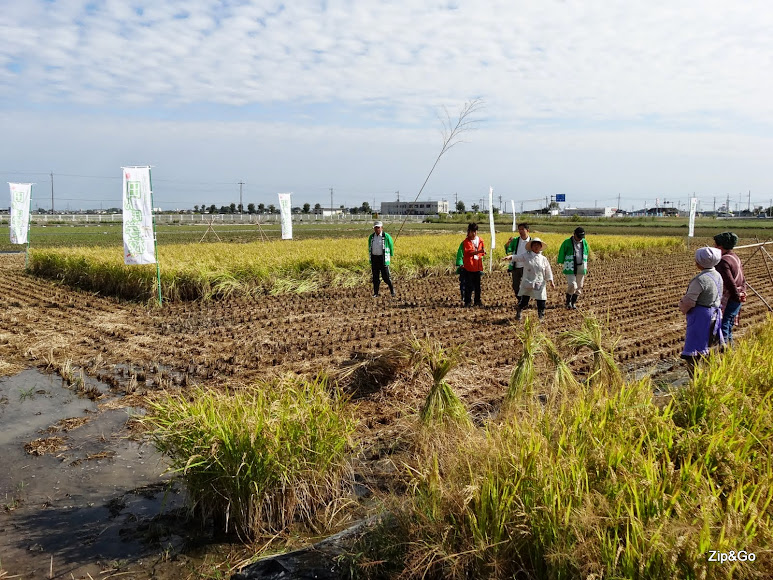 Y a eso íbamos, a un campo cercano propiedad del santuario para aprender a recoger el cereal. El camino hasta allí duró algo más de cinco minutos y fue la mar de curioso. A la cabeza de la expedición iban una serie de organizadores portando unos estandartes y entre nosotros había otro par de ellos tocando la faluta. Os dejo un vídeo del momento en el que se ve la expedición hasta el arrozal.